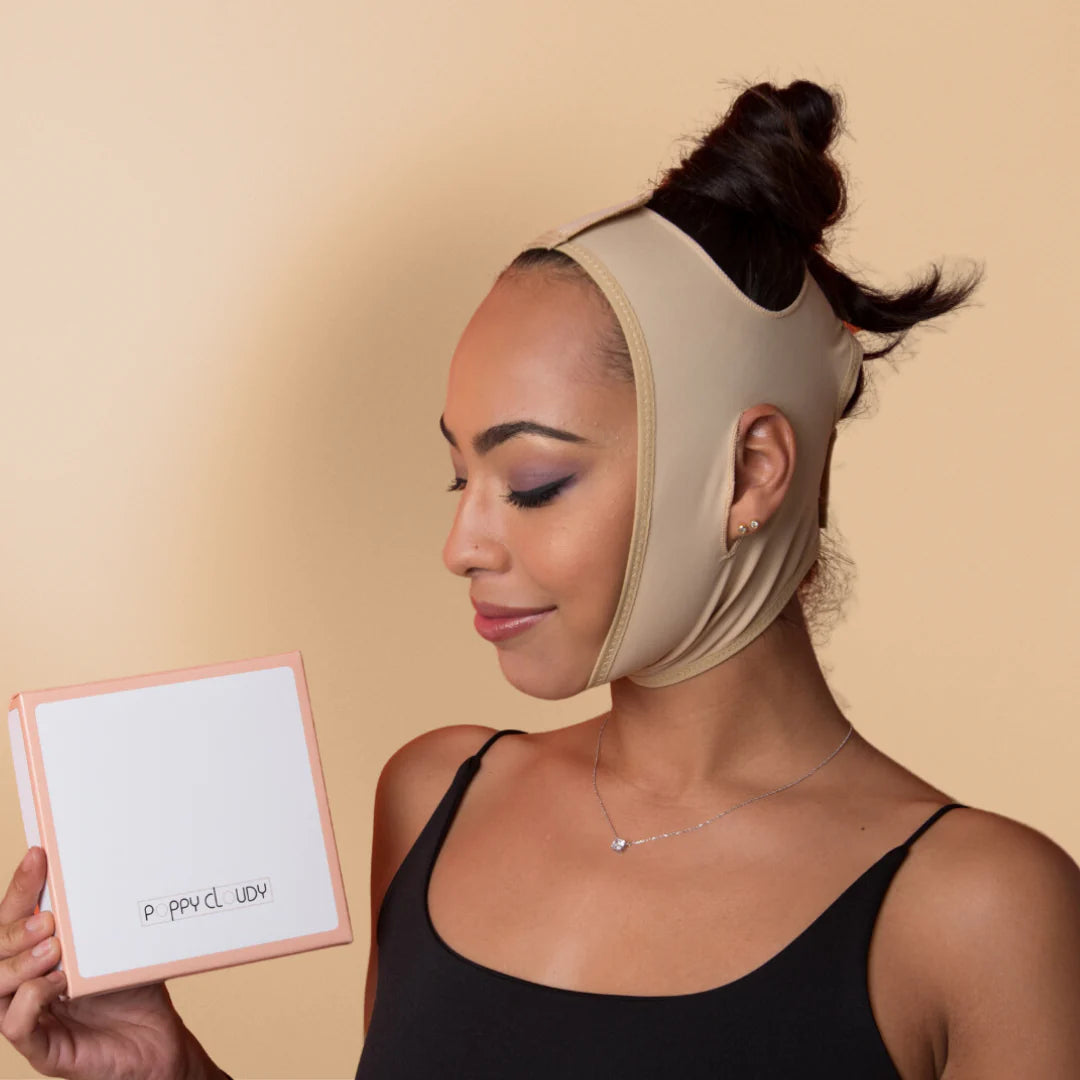 La gaine Poppy Cloudy aide à redéfinir en douceur les contours du visage et à estomper l’apparence du double menton, pour un effet visuel plus harmonieux et structuré.